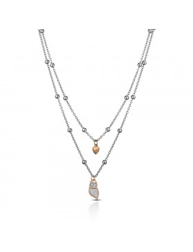 Collana Da Donna Di Ops Objects Della Collezione Glitter Fancy. Gioiello In Acciaio Di Colore Collana Doppia Catena Color Argento E Ciondolo Color Oro Rosa E Microcristalli Con Microcristalli Di Colore Argento. Ciondolo In Oro Rosa E Microcristalli Argentei E Dettagli A Forma Di Gufo. Gioiello Della Lunghezza 50 Cm E Pendente: 11×11 Mm. Gioiello Con Chiusura A Moschettone. La Referenza È Opscl-378
