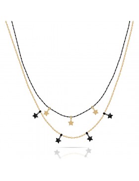 Collana da donna di Ops Objects della collezione twice. Gioiello in acciaio di colore oro giallo e nero. Soggetto: stella. Lunghezza: 45 cm regolabile a 50. La referenza è opscl-653