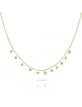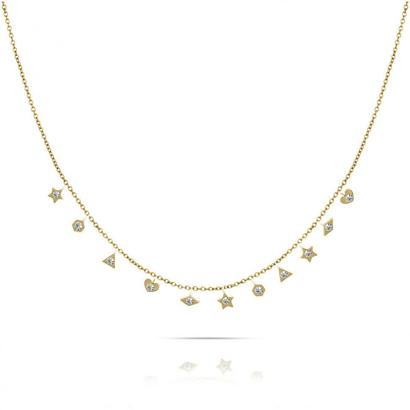 Collana da donna di Ops Objects della collezione ops!precious. Il bracciale è in acciaio di colore oro giallo con cristalli di colore bianco e stella, cuore. La lunghezza del bracciale è di 45 cm regolabile a 50cm. La referenza è opscl-702