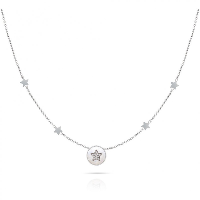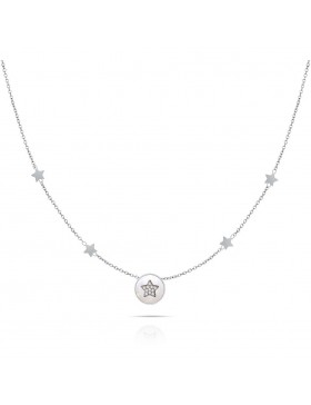 Collana da donna di Ops Objects della collezione ops!pearl coin. Il bracciale è in acciaio di colore argento con cristalli di colore bianco e stella. La lunghezza del bracciale è di 45 cm regolabile a 50cm. La referenza è opscl-706