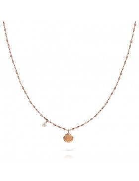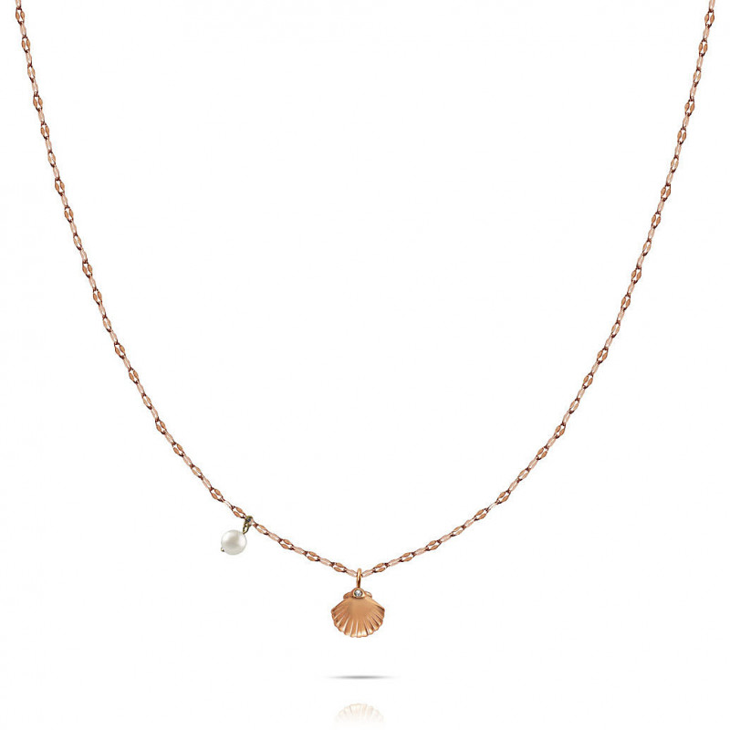 Collana Da Donna Di Opsobjects Della Collezione Tropical. Collana Catena E Doppia Catena In Acciaio Lucido Personalizzata Con Cuore Ops. Pendente Perla E Conchiglia Con Cristallo. Gioiello Di Color Oro Rosa E Della Lunghezza 45 Cm Regolabile A 50 Cm. La Referenza È Opscl-717