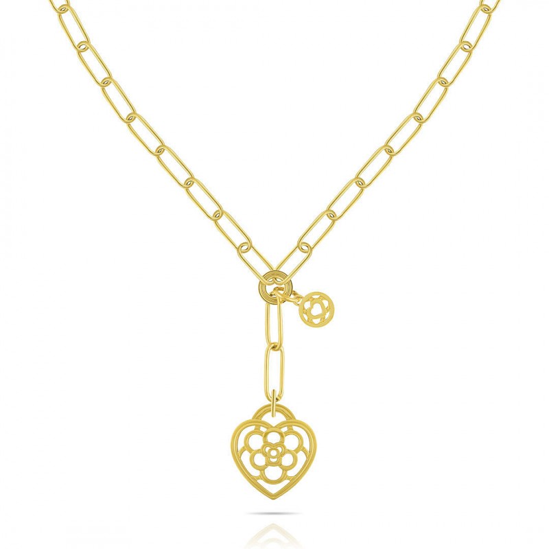 Collana da donna di opsobjects della collezione balance. Collana catena in acciaio lucido con finitura oro giallo, pendente cuore. Personalizzazione ops. La referenza è opscl-733