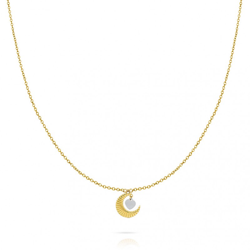 Collana da donna di Ops Objects della collezione midnight passion. Collana realizzata in acciaio con finitura oro con pendente luna e cuore. La referenza è opscl-774