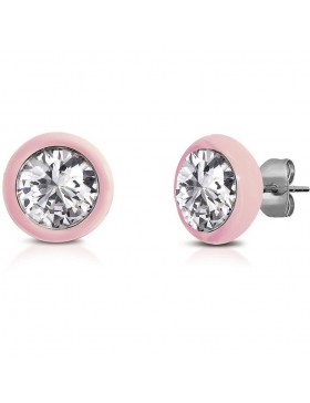 Orecchini Da Donna Di Ops Objects Della Collezione Wonder. Gioiello In Acciaio Di Colore Silver E Smalto Rosa E Cristalli Di Colore Bianco Incastonati In Smalto Colorato. La Referenza È Opsor-664