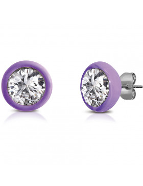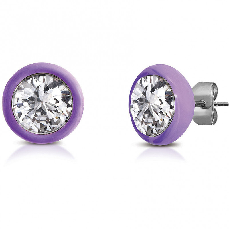 Orecchini Da Donna Di Ops Objects Della Collezione Wonder. Gioiello In Acciaio Di Colore Silver E Smalto Viola E Cristalli Di Colore Bianco Incastonati In Smalto Colorato. La Referenza È Opsor-665