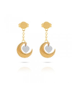 Orecchini da donna di Ops Objects della collezione midnight passion. Orecchini realizzati in acciaio con finutura oro con luna e cuore. La referenza è opsor-744
