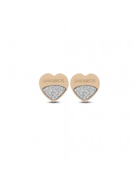 Orecchini a lobo donna a forma di cuore in acciaio color oro rosa con microcristalli argentei.