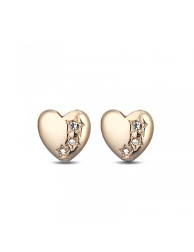 Orecchini a lobo a forma di cuore in acciaio color oro rosa, impreziositi da tre stelle con cristalli incastonati di 13mm cadauno