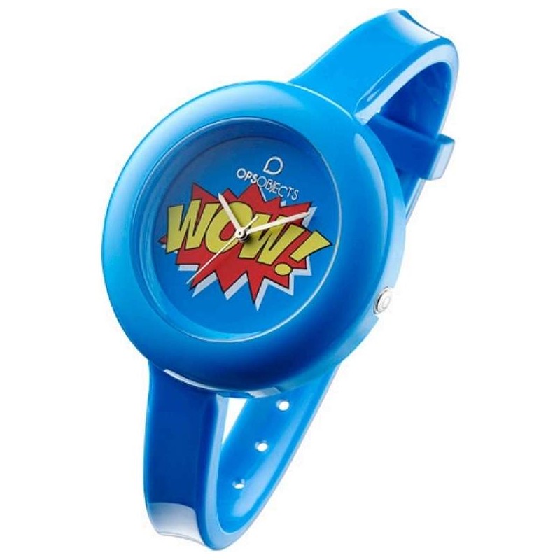 La collezione OPS!POP è ispirata allo stile pop-art e a quello delle mitiche factory newyorkesi. L'orologio presenta il quadrante con grafiche che mostrano messaggi esplosivi d’ironia e da cartoon: per un mondo fatto di fantasia e divertimento.