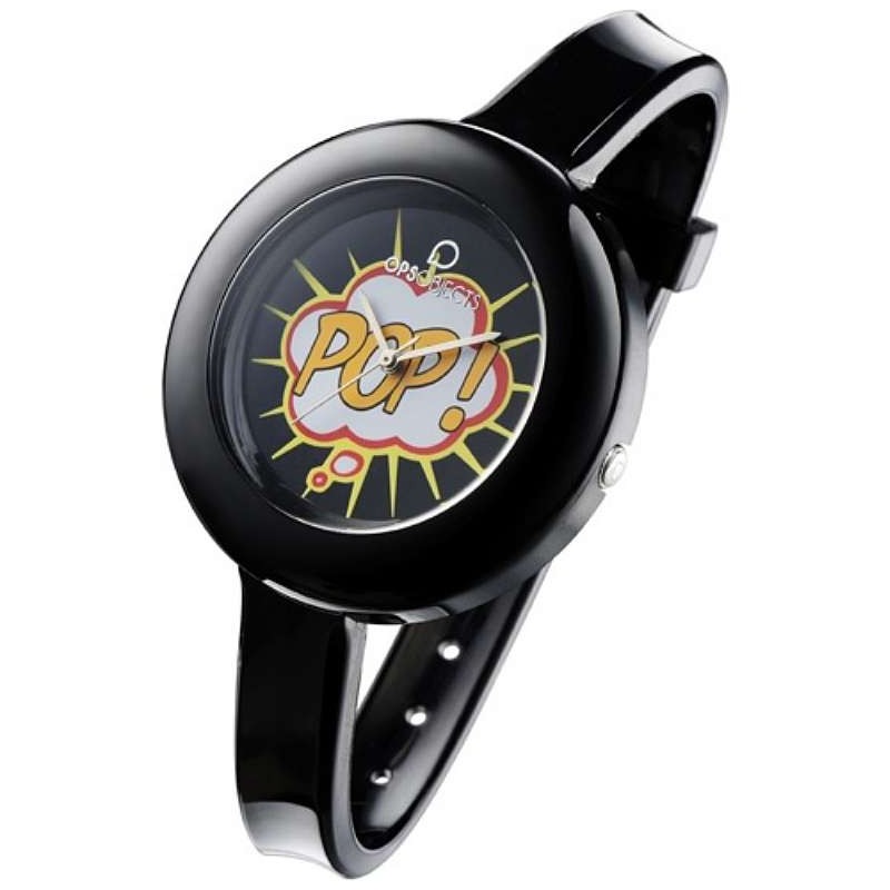 La collezione OPS!POP è ispirata allo stile pop-art e a quello delle mitiche factory newyorkesi. L'orologio presenta il quadrante con grafiche che mostrano messaggi esplosivi d’ironia e da cartoon: per un mondo fatto di fantasia e divertimento.