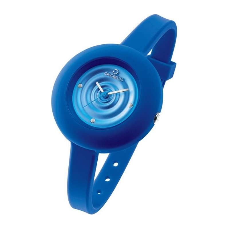 Orologio Ops!Objects della collezione raindrop watch, con cassa rotonda in policarbonato, diametro cassa mm 40, fondello in acciaio, colore blu, resistente all'acqua 3 atm, movimento al quarzo, datario: no,