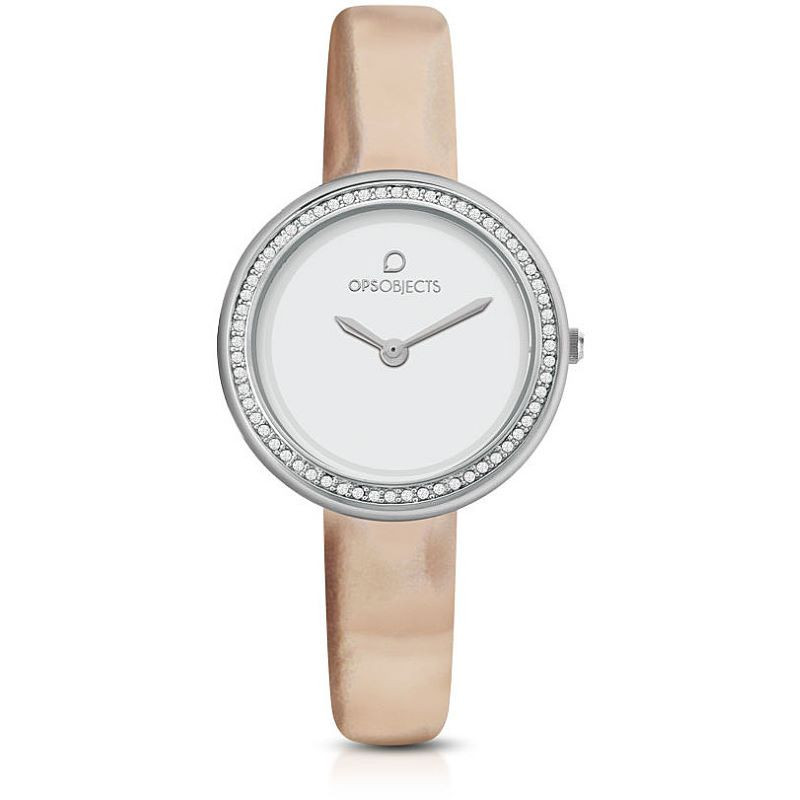 Orologio Solo Tempo Da Donna Di Ops Objects Della Collezione Ops!Cute. Orologio Con Cassa Rotonda In Metallo Di Colore Argento Del Diametro Di 28Mm. Il Quadrante È Di Colore Bianco Con Lunetta Con Cristalli. Il Cinturino È In Similpelle Di Colore Oro Rosa Lucido. Il Movimento È Vx00. La Resistenza All'Acqua È Di 3 Atm. La Referenza È Opspw-675