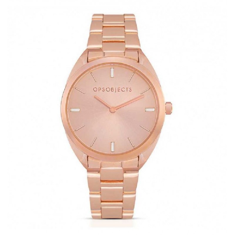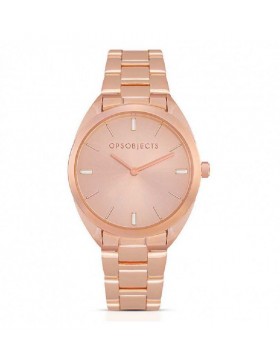 Orologio da donna di opsobjects della collezione essential. Orologio con cassa in metallo oro rosa da 32 mm. Quadrante con quattro indici cristallo baguette. Cinturino bracciale. Personalizzato ops. La referenza è opspw-818