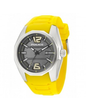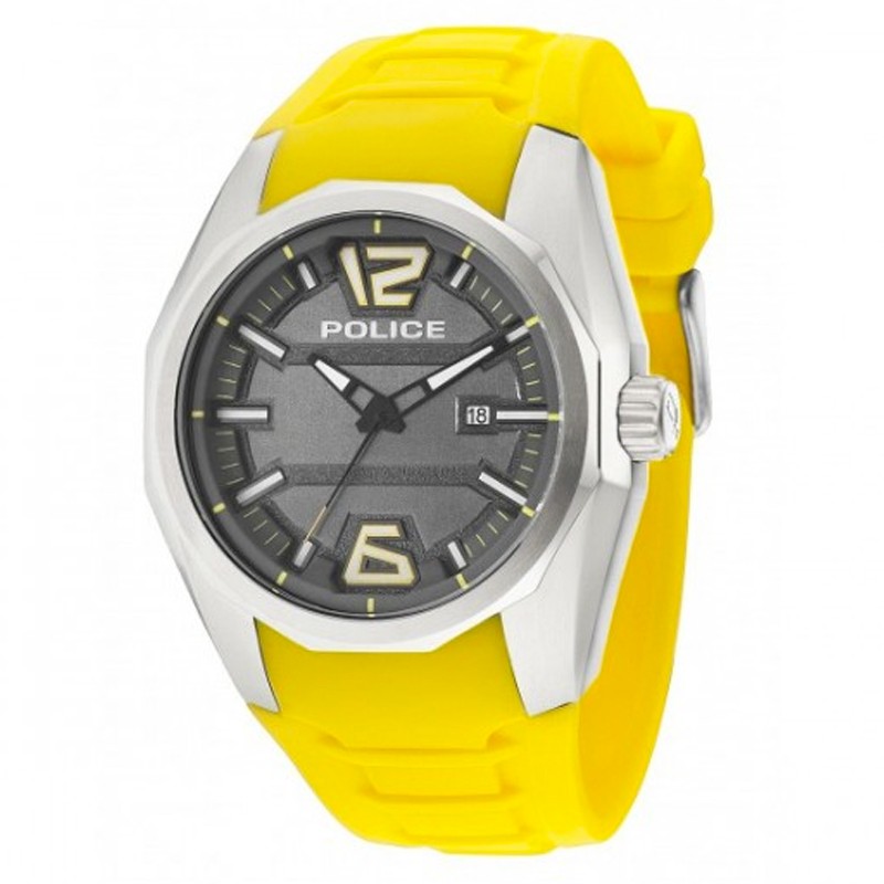Police Orologio Uomo Solo Tempo Cassa in Acciaio Cinturino in Silicone Giallo Quadrante Sunray Gun