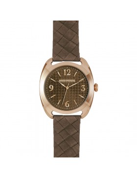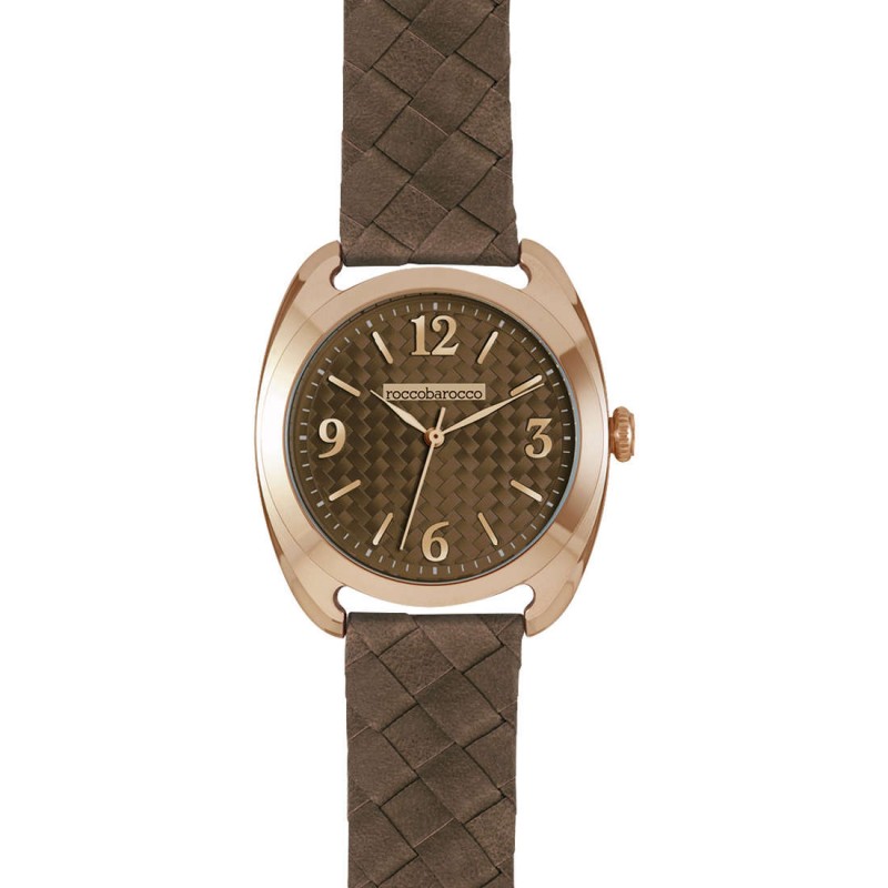 Orologio RoccoBarocco, Collezione MONTENAPOLEONE, Cassa (40mm) rosegold, quadrante effetto intreccio cioccolato, movimento Jpn, cinturino in pelle intrecciata scamosciata cioccolato, Referenza: RB0095