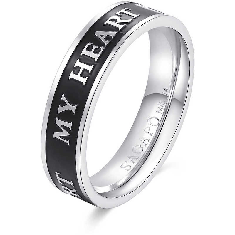 SAGAPO' Anello FOR LOVE in acciaio My Heart smalto nero SFV37B