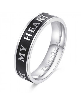 Anello Da Donna Di S'Agapò Della Collezione For Love. Gioiello Realizzato In Acciaio E Smalto Nero, Con Scritta: "My Heart". Misura: 12. La Referenza È Sfv37B