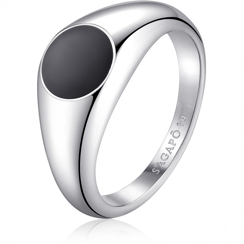 SAGAPO' Anello RIPPLE sigillo in acciaio smalto nero SRP36B