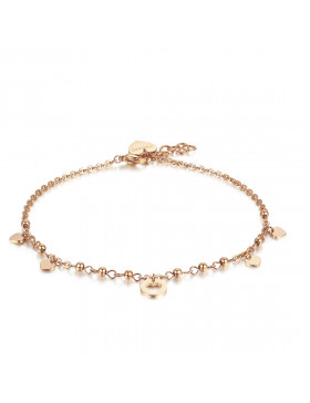 Cavigliera Da Donna Di S'Agapò Della Collezione Haiti. Gioiello Realizzato In Acciaio Con Pvd Oro Rosa Con Pendenti A Forma Di Cuore. La Referenza È Sht39