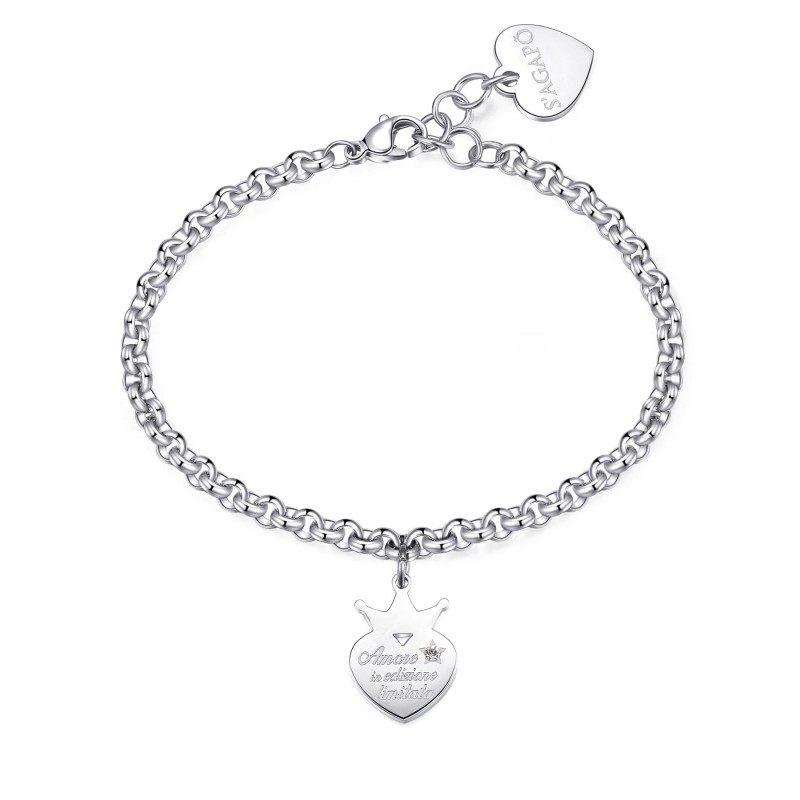 SAGAPO' Bracciale BE MY ALWAYS in acciaio con pendente a forma di cuore "Amore in edizione limitata" SBM71