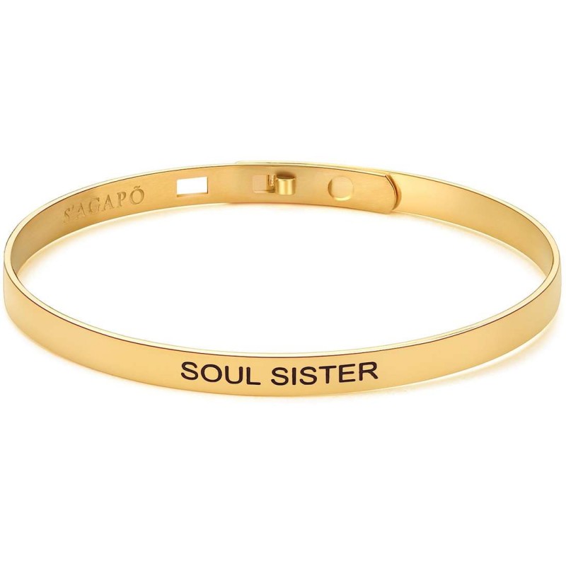 Bracciale rigido in acciaio 316L, pvd oro giallo con scritta "Soul sister."