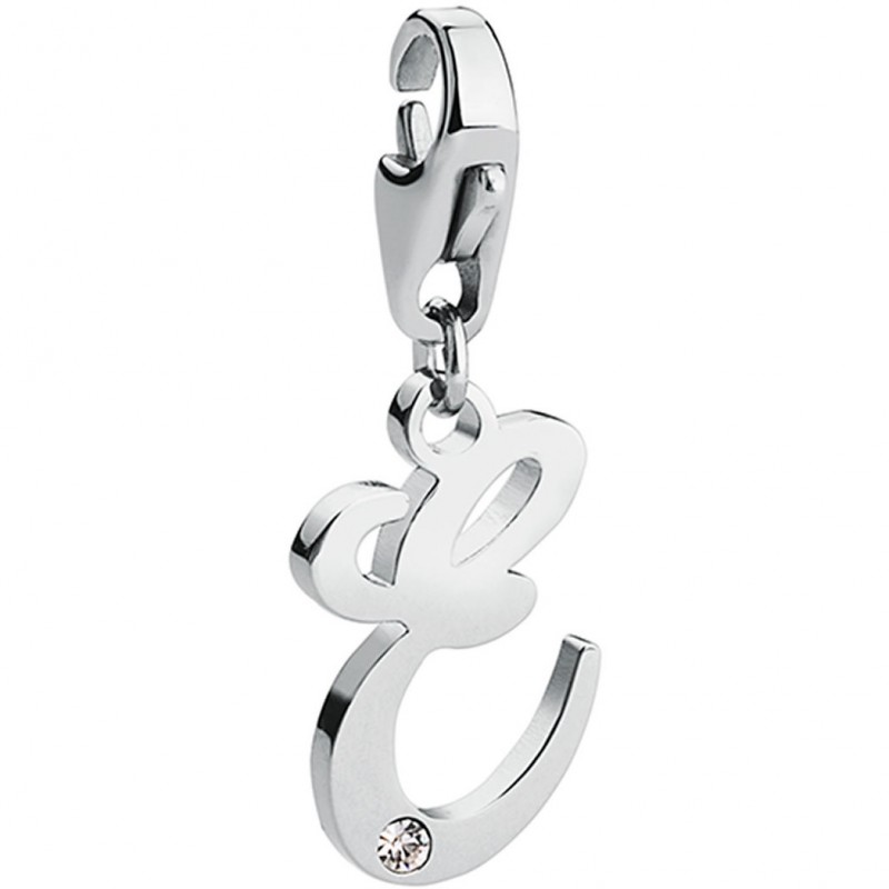 Ciondolo Di Sagapo Da Donna. Ciondolo Happy In Acciaio A Forma Di E Con Cristallo