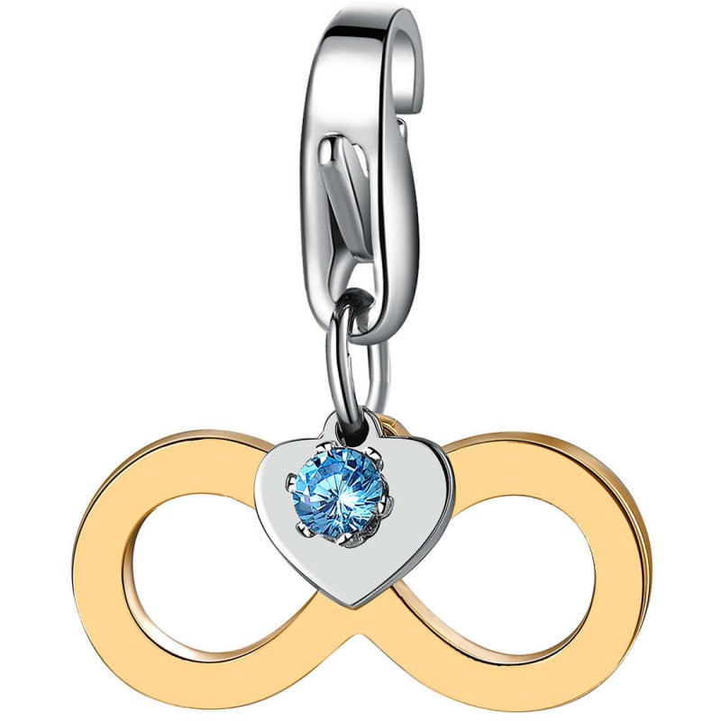 Charm in acciaio 316L, pvd oro e zircone celeste