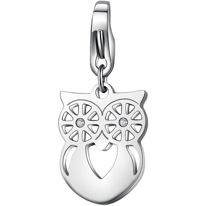 Ciondolo Da Donna Di Sagapò Della Collezione Happy. Ciondolo In Acciaio A Forma Di Gufo Con Cristalli Bianchi.