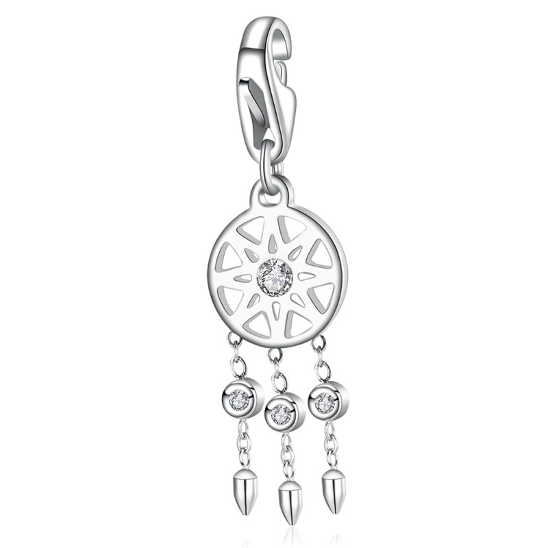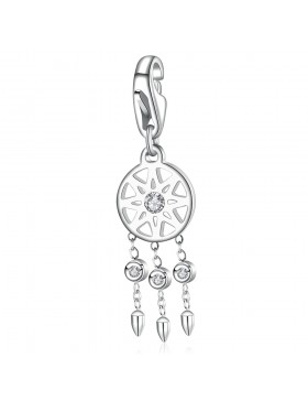 Charm in acciaio 316L a forma di acchiappasogni e cristalli bianchi.