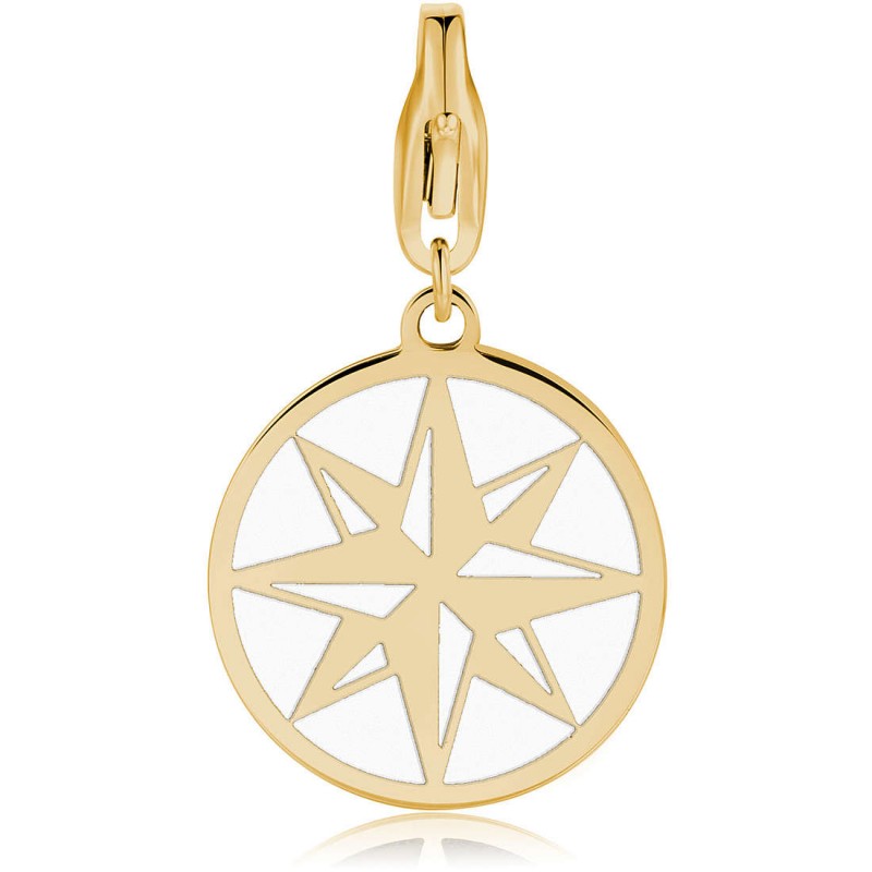 Charm in acciaio 316L, pvd oro e smalto bianco