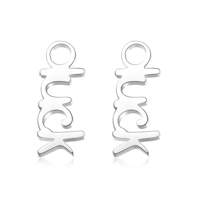 Pendente per orecchino componibile in acciaio 316L con scritta luck .