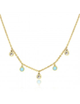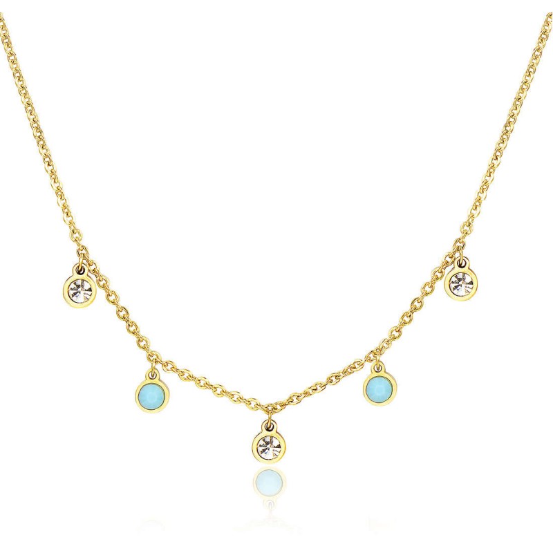 Collana in acciaio 316L e pvd oro con cristalli bianchi e turchese.