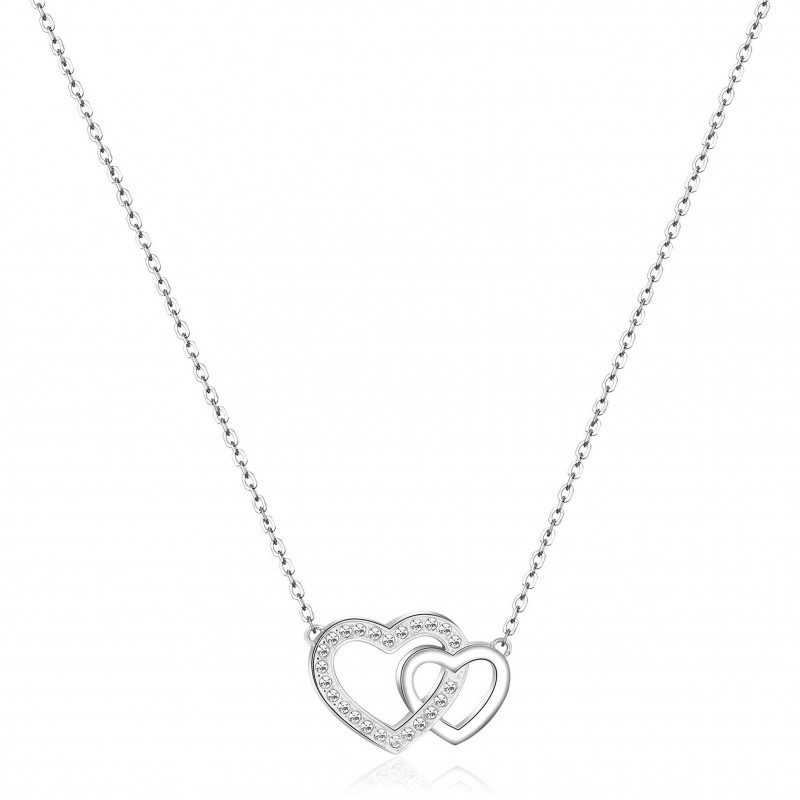 Collana Da Donna Di S'Agapò Della Collezione Twice. Collana In Acciaio E Cristalli Con Pendente Con Cuori Intrecciati. La Referenza È Stw01