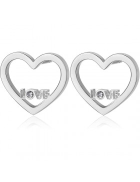 Orecchini a lobo in acciaio 316L a forma di cuore con scritta Love e cristallo.