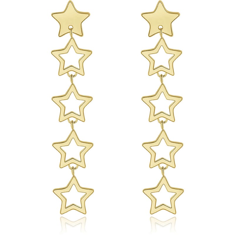 Orecchini pendenti in acciaio 316L e pvd oro con stelle.