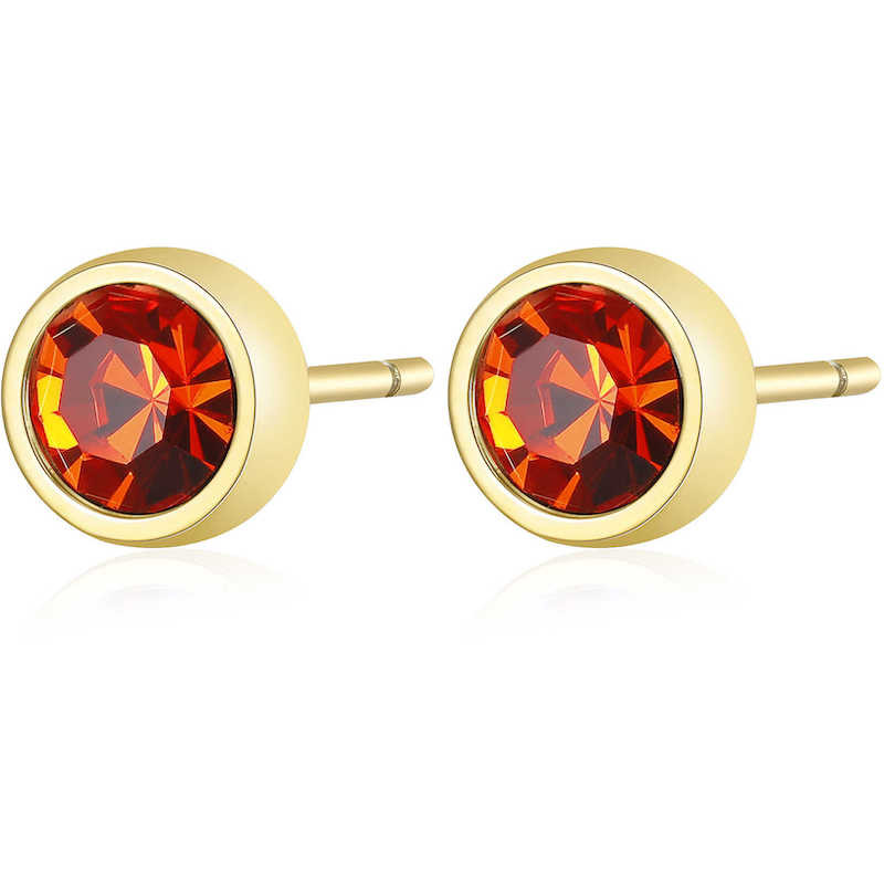 Orecchini Da Donna Di S'Agapò Della Collezione Click. Gioiello Realizzato In Acciaio Con Pvd Oro E Cristalli Rossi. La Referenza È Sck28