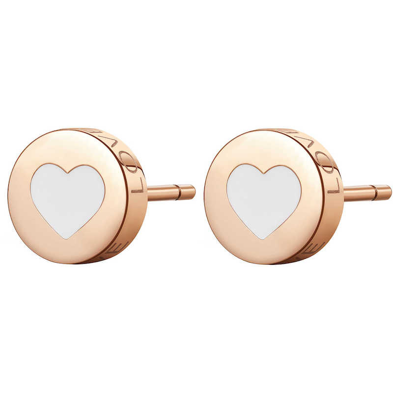 Orecchini Da Donna Di S'Agapò Della Collezione Click. Gioiello Realizzato In Acciaio Con Pvd Oro Rosa A Forma Di Cuore. La Referenza È Sck56