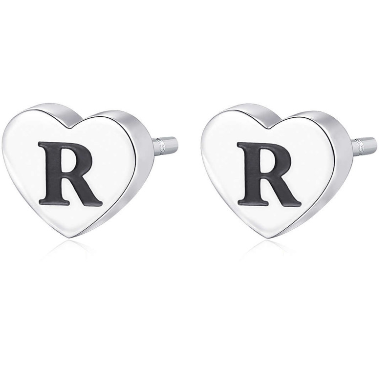 Orecchini Da Donna Di Sagapo Della Collezione Click. Gioiello Realizzato In Acciaio 316L E Smalto Nero. Dimensione: 8,8 Mm. Orecchini Con Lettera R. La Referenza È Sck110