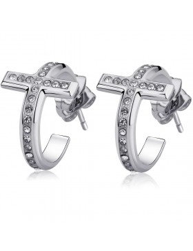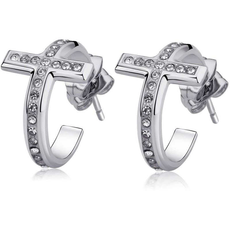Orecchini in acciaio 316L a forma di croce con cristalli bianchi