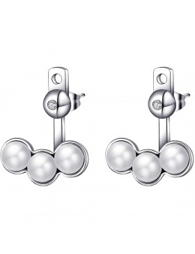 Orecchini in acciaio 316L con perle e cristalli bianchi